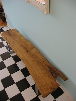 For some reason, there was a huge cut into the piece. I assumed it was from a chainsaw. I made a nice inlay to fill the gap. I like it. |